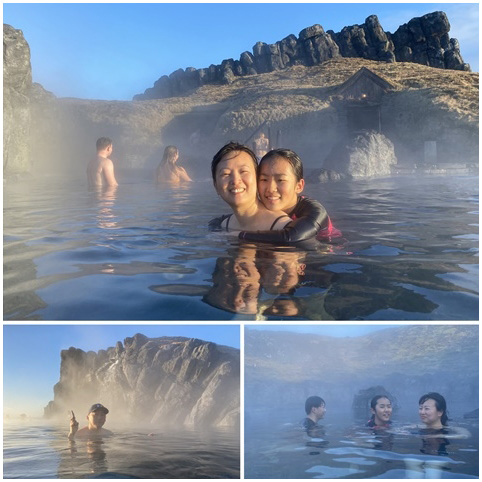레이카비크쪽에는 블루라군과 스카이라군이라는 큰 온천이 두 곳 있다. 보다 대중들에게 잘 알려진 곳은 블루라군. 하지만 좀 비싸기도 하고 예약도 일찍 안했더니 우리가 원했던 해질 무렵은 입장이 어렵다.